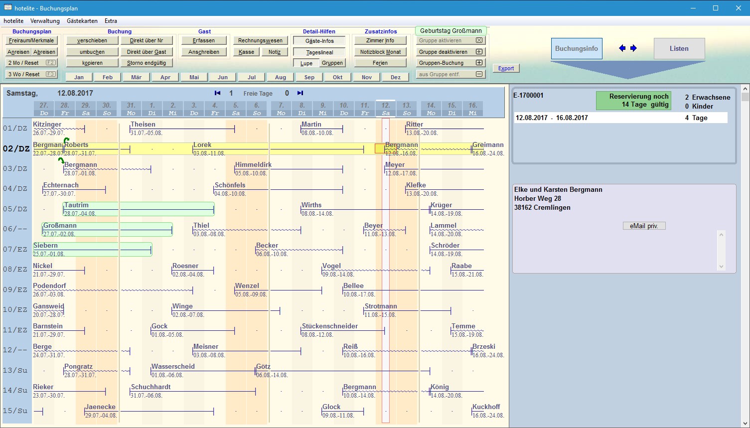 hotelite Buchungsplan in der 3-Wochenansicht ... oder in der detaillierten 3-Wochendarstellung. Sie können immerbei voller Funktionalität zwischen beiden Darstellungen wechseln.2 / 15